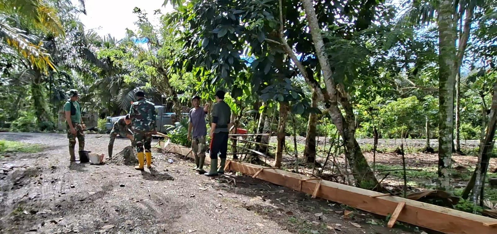 Aceh Barat – Semangat ibadah dan pengabdian menyatu dalam diri personel Satgas TMMD Reguler Ke-127 Kodim 0105/Abar yang terus melanjutkan pekerjaan sasaran fisik pembuatan Talud Penahan Timbunan (TPT) di Desa Pasi Aceh, Kecamatan Woyla, Kamis (19/02/2026).