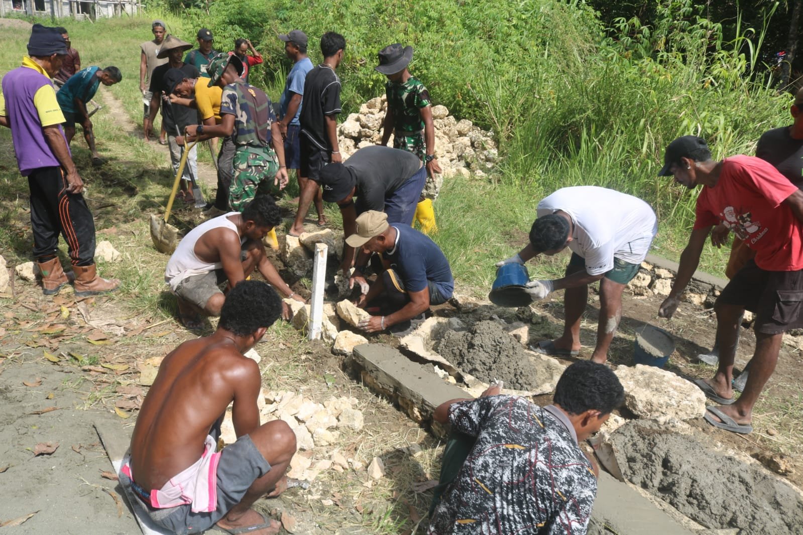 Jalan Setapak Penghubung Gereja dengan Jalan Raya, Satgas Dan Warga Semangat Kerjakan Pembangunan