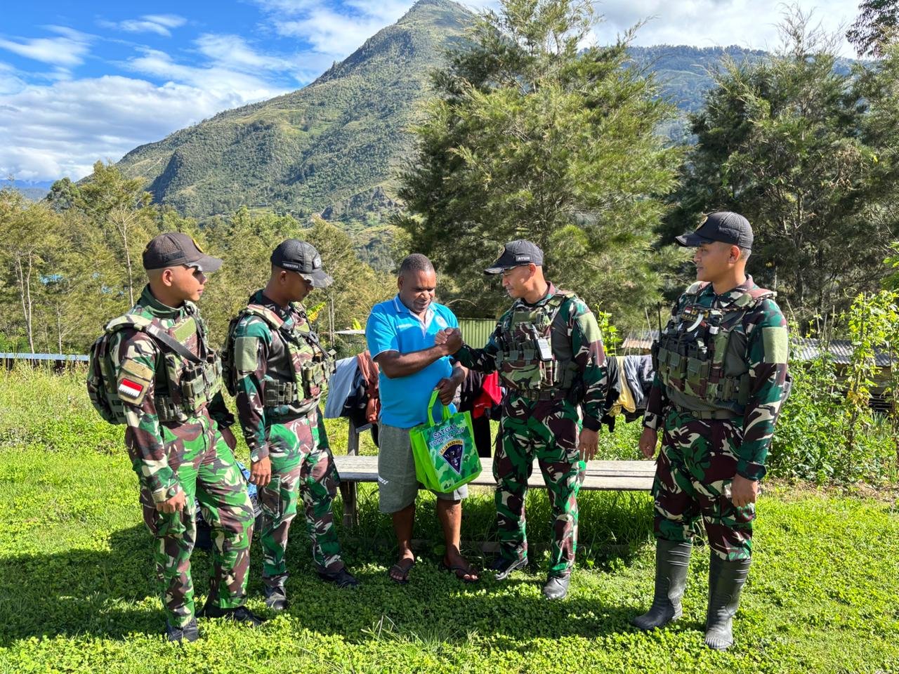 LANNY JAYA – Wadanpos Pirime Letda Inf Agung. WK beserta beberapa personel Pos Pirime Satgas Yonif 614/RJP anjangsana kerumah salah satu tokoh agama Kampung Ekanom, Bapak Edi Wanimbo (52) yang beralamat di Kampung Ekanom, Distrik Pirime, Kabupaten Lanny Jaya, Papua Pegunungan, Jum’at (15/8/2025).
