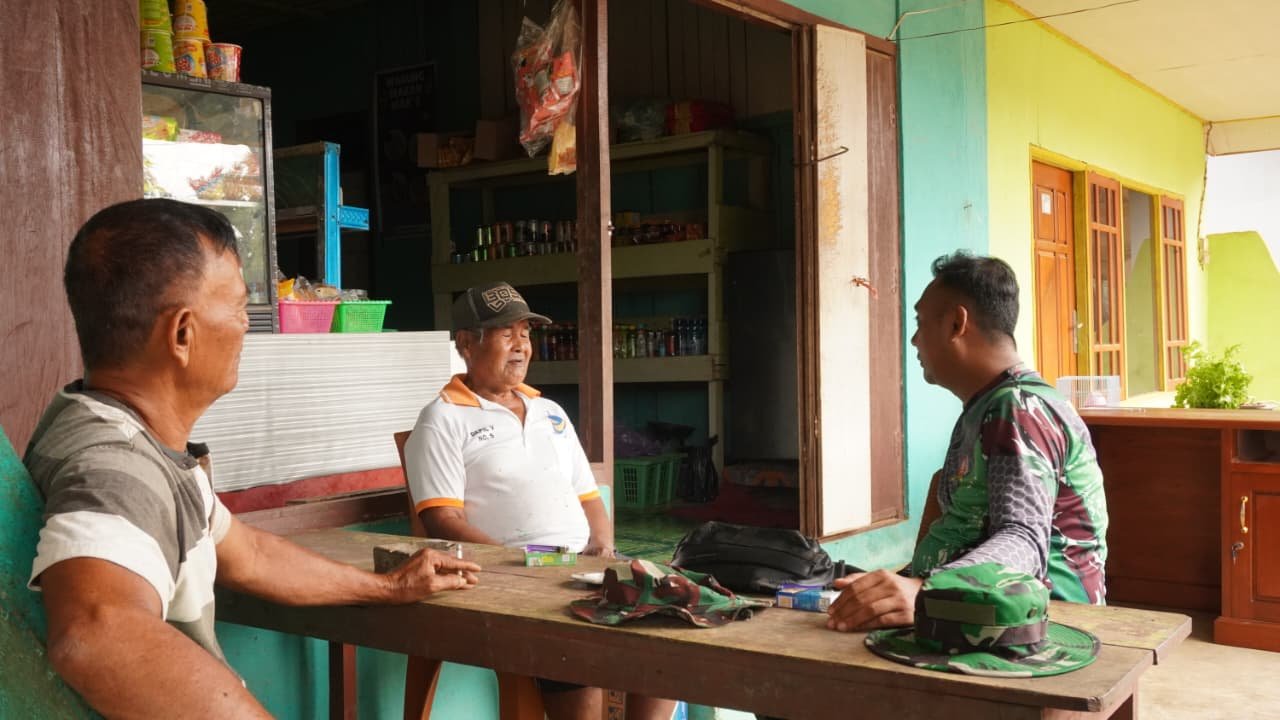 Dalam suasana santai, anggota Satgas terlihat berbincang bersama masyarakat mengenai kondisi sosial, keamanan lingkungan, hingga harapan warga terhadap keberlanjutan pembangunan desa. Interaksi tersebut berlangsung hangat dan penuh kekeluargaan.