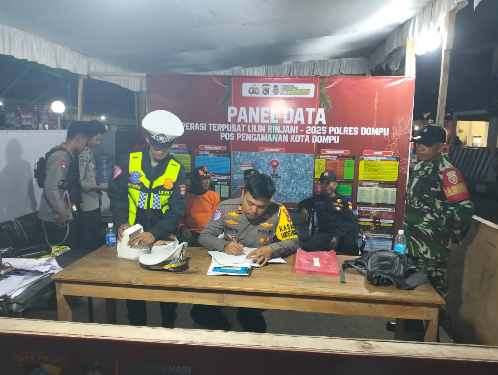 Saat ini seluruh personel gabungan, khususnya personel Kodim 1614/Dompu, melaksanakan siaga dan standby di Pos Pengamanan dan Pelayanan Kota Dompu dalam keadaan aman, tertib, serta siap memberikan pelayanan terbaik kepada masyarakat demi terciptanya situasi kamtibmas yang kondusif.