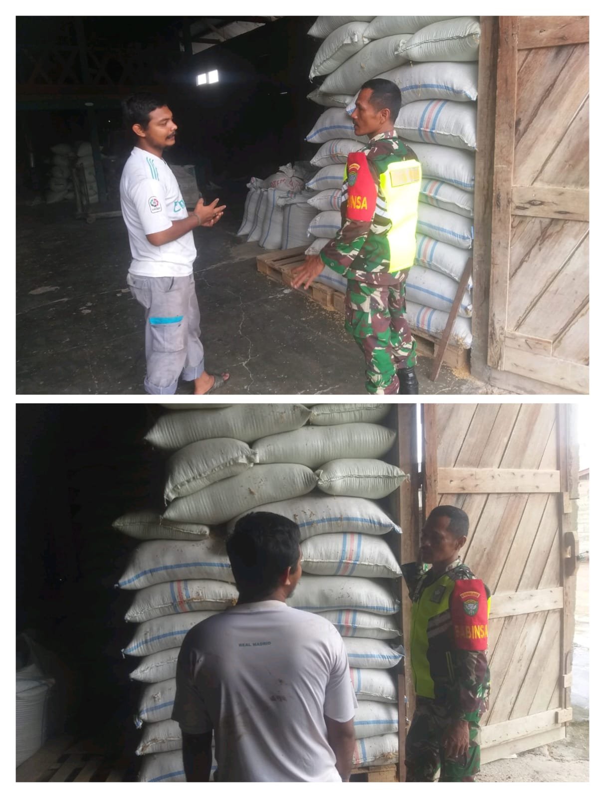 Selama kunjungan ke kilang padi, Serka Harlin melihat langsung jumlah stok gabah yang belum digiling, proses penggilingan, serta stok beras yang siap dijual kepada masyarakat. Ia juga berkomunikasi dengan pengelola kilang untuk mengetahui perkembangan situasi pasar serta potensi kendala yang mungkin terjadi.
