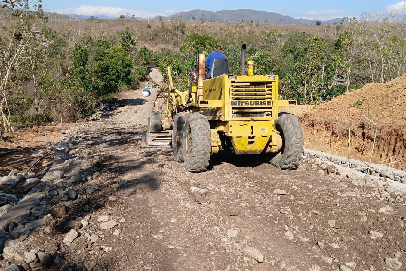 Belu – Menjelang penutupan program TNI Manunggal Membangun Desa (TMMD) ke-125, Satgas Kodim 1605/Belu terus memaksimalkan penyelesaian pembangunan jalan baru di Desa Naekasa, Kecamatan Tasifeto Barat. Pada Rabu (20/8/2025), alat berat berupa grader dan vibro roller dikerahkan untuk meratakan sekaligus memadatkan badan jalan.