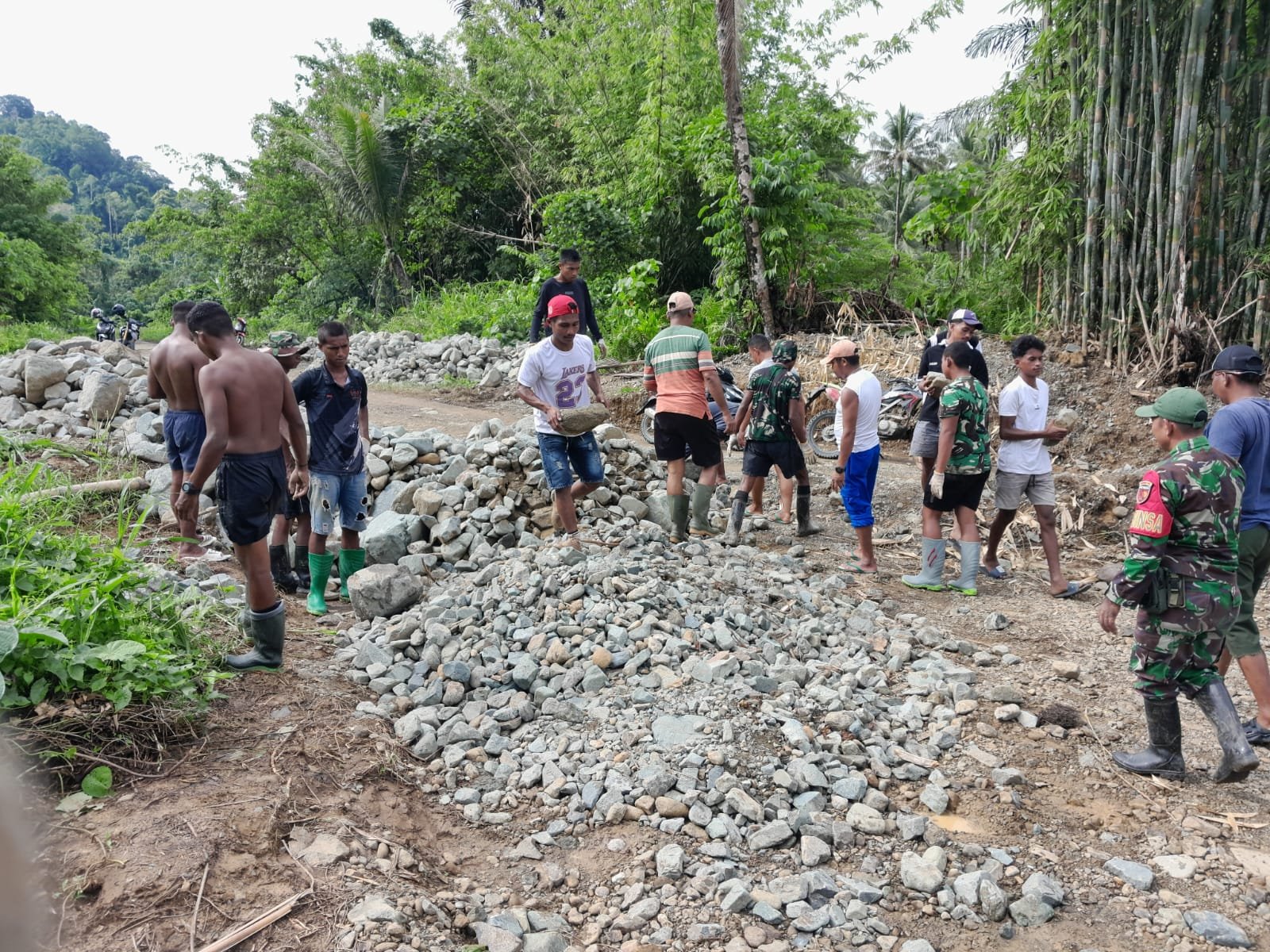HALMAHERA SELATAN – Semangat Warga dan Personil Kodim 1509/Labuha yang sedang mengerjakan pembangunan Jembatan Garuda di Desa Sayoang, Kecamatan Bacan Selatan, Kabupaten Halmahera Selatan. Rabu(15/04/2026)