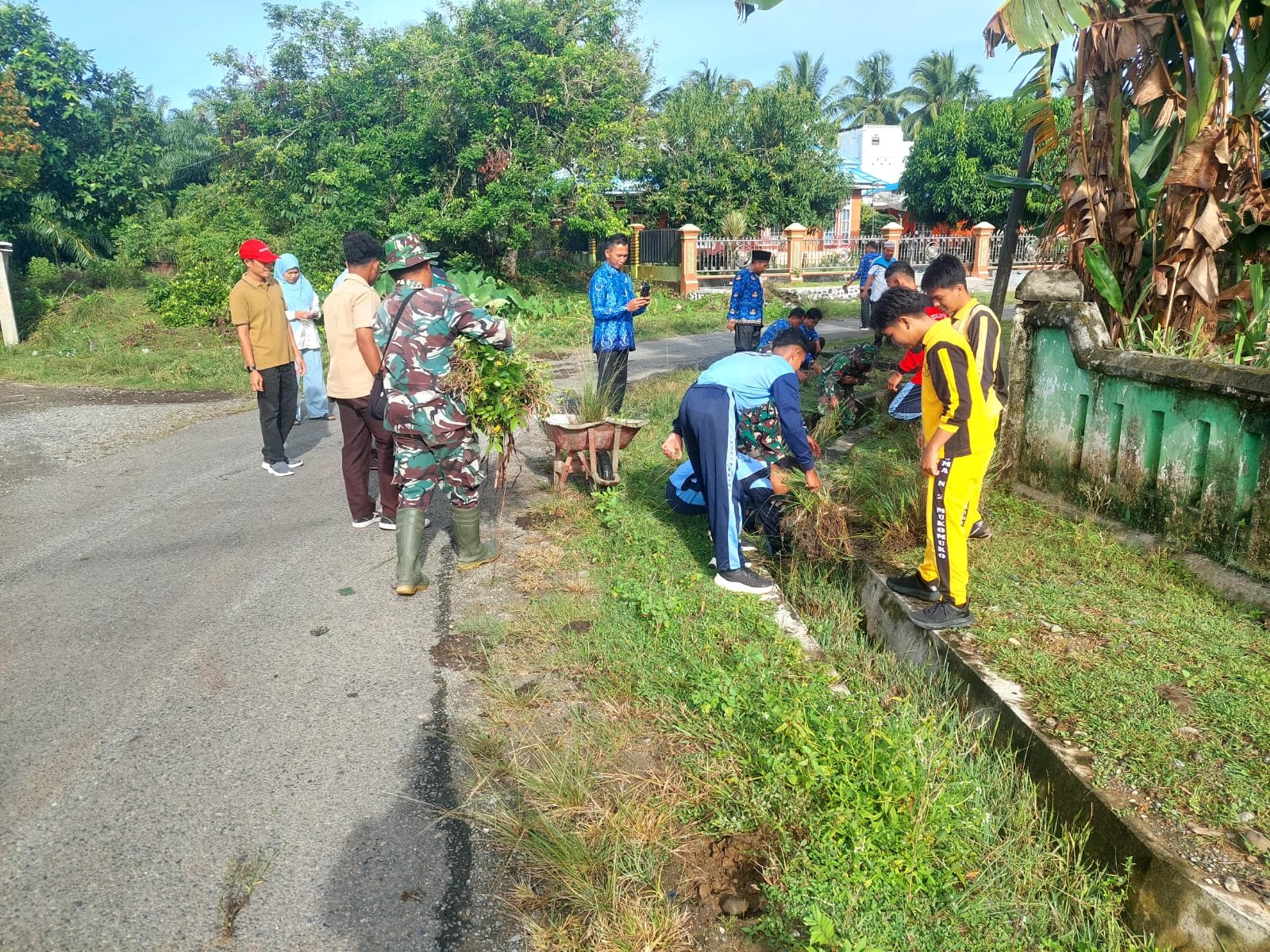 Kegiatan tersebut diimplikasikan dilapangan, dengan melaksanakan pembersihan di halaman Masjid Darussalam yang di ikuti oleh TNI, Polri, Kades beserta perangkatnya, Pengurus Masjid, Masyarakat Desa dan Siswa/Siswi SMA dan MAN.