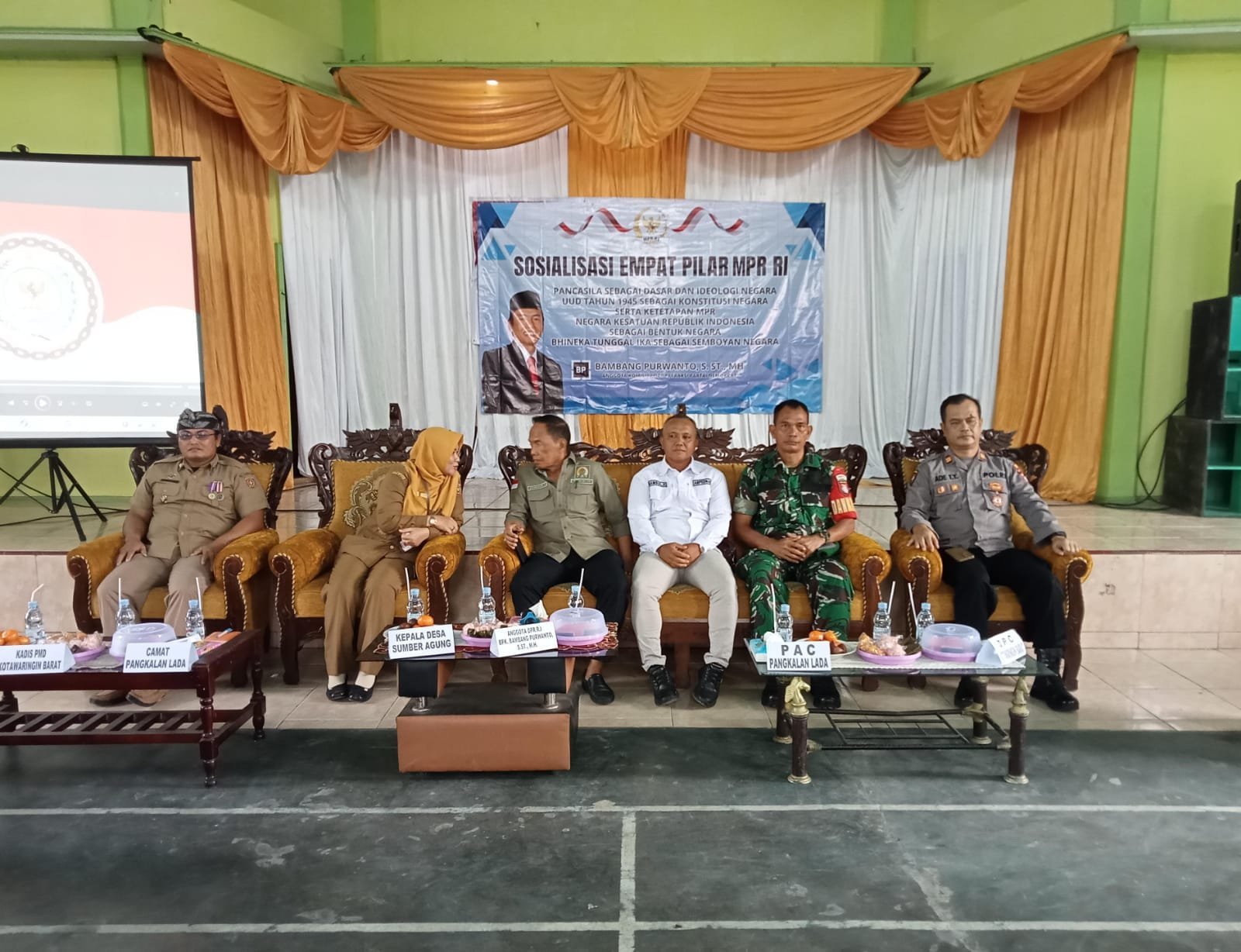 Kotawaringin Barat — Dalam upaya memperkuat semangat kebangsaan dan nilai-nilai dasar negara di tengah masyarakat, Danramil 1014-05/Pangkalan Banteng Kapten Inf Suwaryo menghadiri sekaligus menjadi narasumber dalam kegiatan Sosialisasi Empat Pilar Kebangsaan yang digelar di Aula Sumber Agung, Jl. A. Yani KM 23, Desa Sumber Agung, Kecamatan Pangkalan Lada, Senin pagi (20/10).
