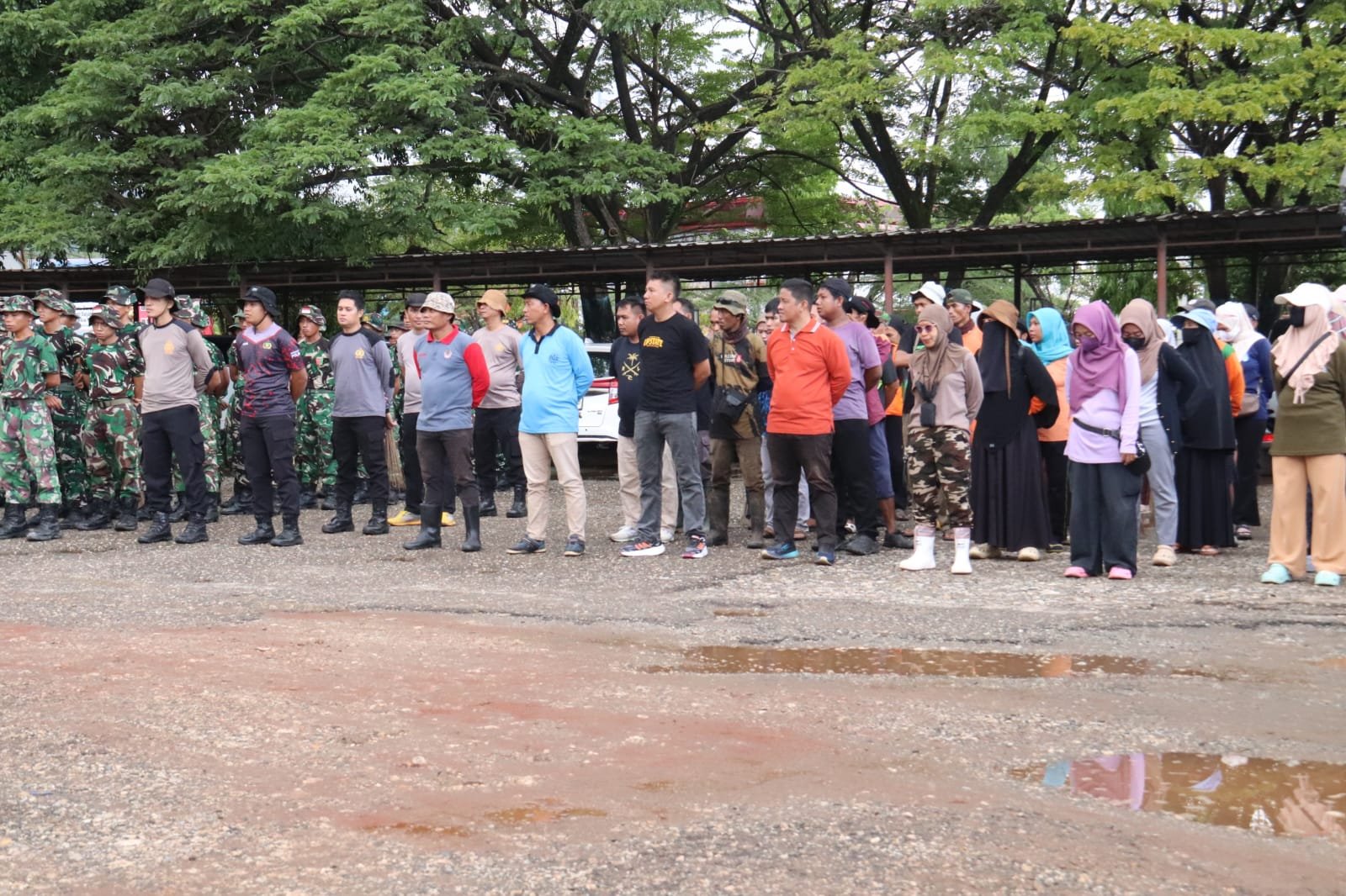 Disampaikan pula bahwa pada kegiatan hari ini seluruh peserta melaksanakan gotong royong membersihkan dan mengangkat sampah, karena sampah yang tidak terkelola dengan baik dapat menimbulkan berbagai permasalahan lingkungan bahkan berpotensi menyebabkan bencana alam.