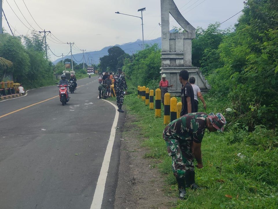NTT-SIKKA,- Personel Koramil 1603-04/Kewapante Kodim 1603/Sikka di pimpin oleh Danramil Lettu Inf Nikolaus Nama Dalot melaksanakan Karya Bakti pembersihan sekitaran jalan raya di Dusun Wairhubing, Desa Watuliwung, Kec Kangae, Kab. Sikka, Kamis 16/01/25.