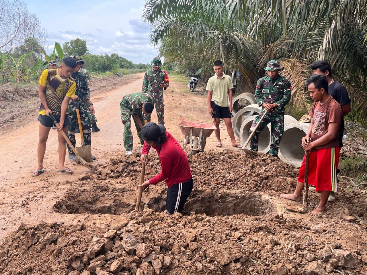 Banyuasin – Kasdim 0430/BA Mayor Inf Saibudin didampingi Pasiter Dim 0430/BA Kapten Inf Panca Agung serta Pasiops Kapten Arm M. Riduan meninjau langsung progres pelaksanaan TMMD ke-127 yang dilaksanakan oleh Kodim 0430/BA.