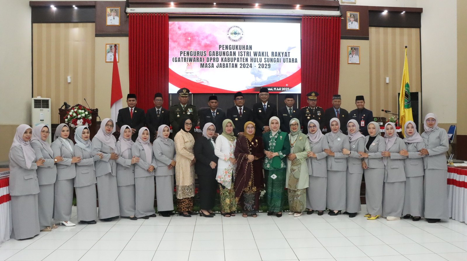 Kegiatan dilanjutkan dengan pembacaan doa dan penutupan sidang, serta acara tambahan berupa pengukuhan Pengurus Gabungan Istri Wakil Rakyat (GATRIWARA) DPRD HSU masa jabatan 2024–2029. Seluruh rangkaian kegiatan diakhiri dengan menyanyikan lagu Padamu Negeri dan sesi foto bersama.