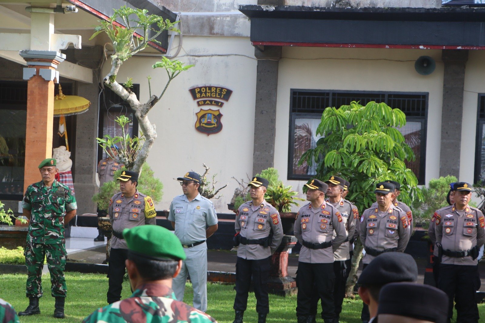 Kegiatan apel dipimpin oleh Wakapolres Bangli Kompol I Gede Sudyatmaja, S.H., M.H. dan diikuti sekitar ±125 personel gabungan yang terdiri dari personel Polres Bangli, Kodim 1626/Bangli, Dinas Perhubungan Kabupaten Bangli, serta unsur instansi terkait lainnya.