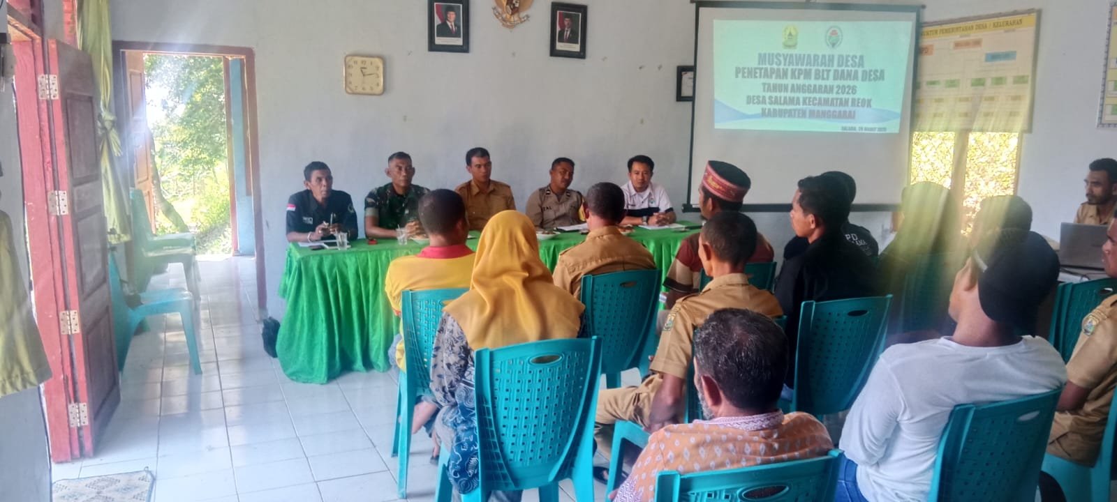 REOK – Dalam upaya memastikan pembangunan desa yang transparan dan akuntabel, Babinsa Koramil 1612-02/Reok, Sertu Safrudin, menghadiri Rapat Penetapan Anggaran Pendapatan dan Belanja Desa (APBDes) Salama Tahun Anggaran 2026. Kegiatan ini berlangsung khidmat di Aula Kantor Desa Salama, Selasa (31/03/2026).