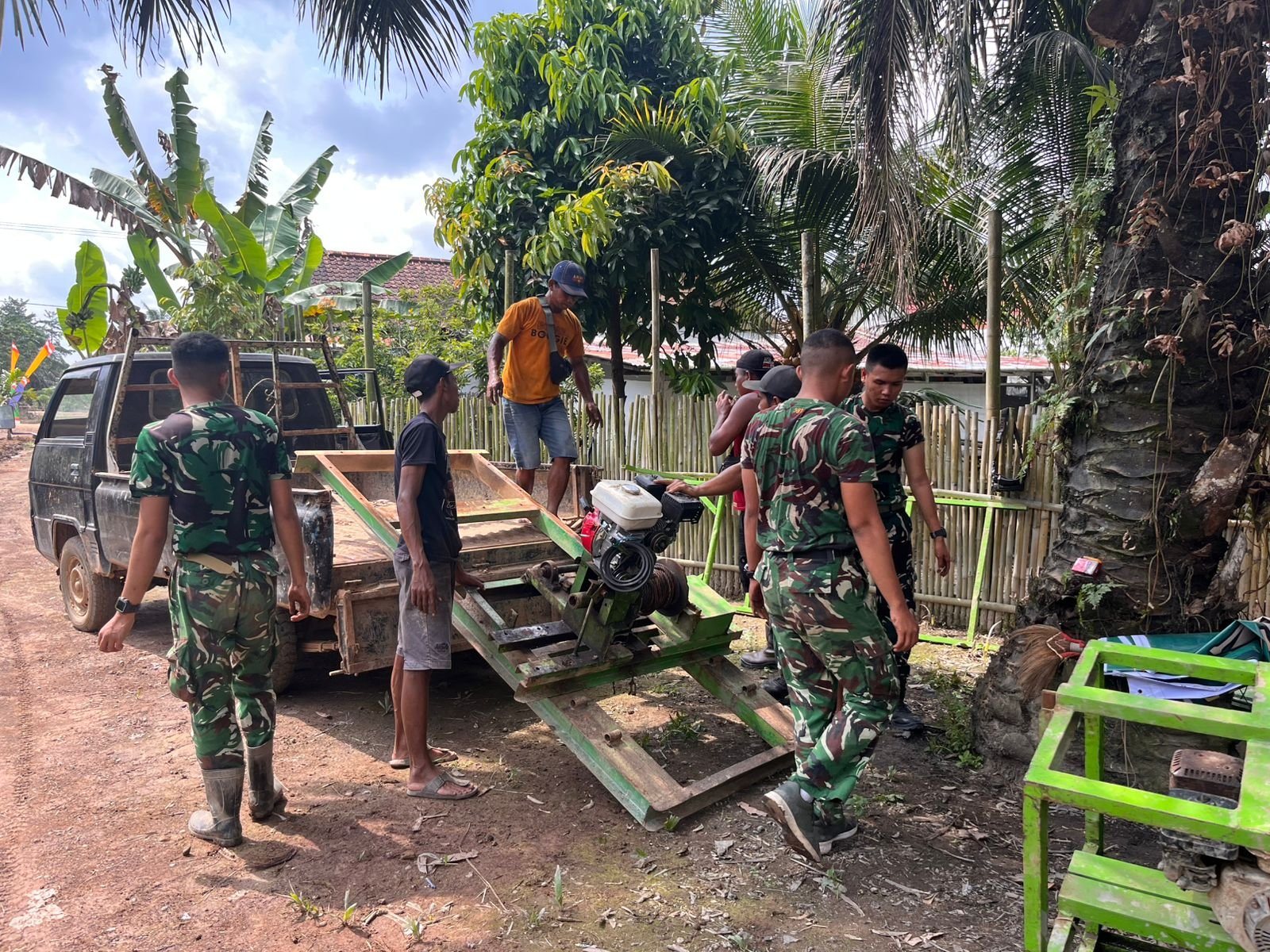 Pekerjaan dilakukan secara gotong royong guna mempercepat penyelesaian. Satgas dan warga bahu-membahu mengoperasikan peralatan pengeboran serta melakukan pemasangan instalasi pendukung.