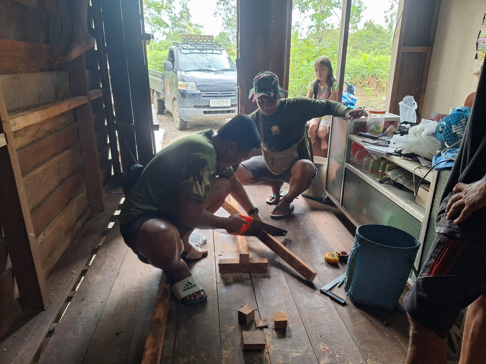 Para prajurit dan masyarakat saling bahu-membahu mulai dari pengangkutan material hingga proses perbaikan rumah. Suasana gotong royong yang hangat terpancar di lokasi, memperlihatkan kuatnya sinergi antara TNI dan rakyat.