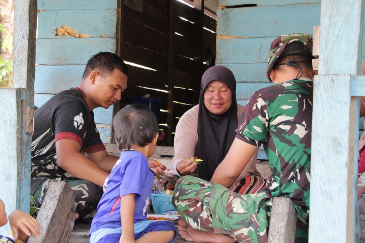 Personel Kodim 1305/Buol Tolitoli tampak aktif berinteraksi dengan masyarakat di sela kegiatan pembangunan. Mereka turut membantu aktivitas warga, berdialog mengenai kondisi desa, serta memberikan motivasi kepada generasi muda setempat.