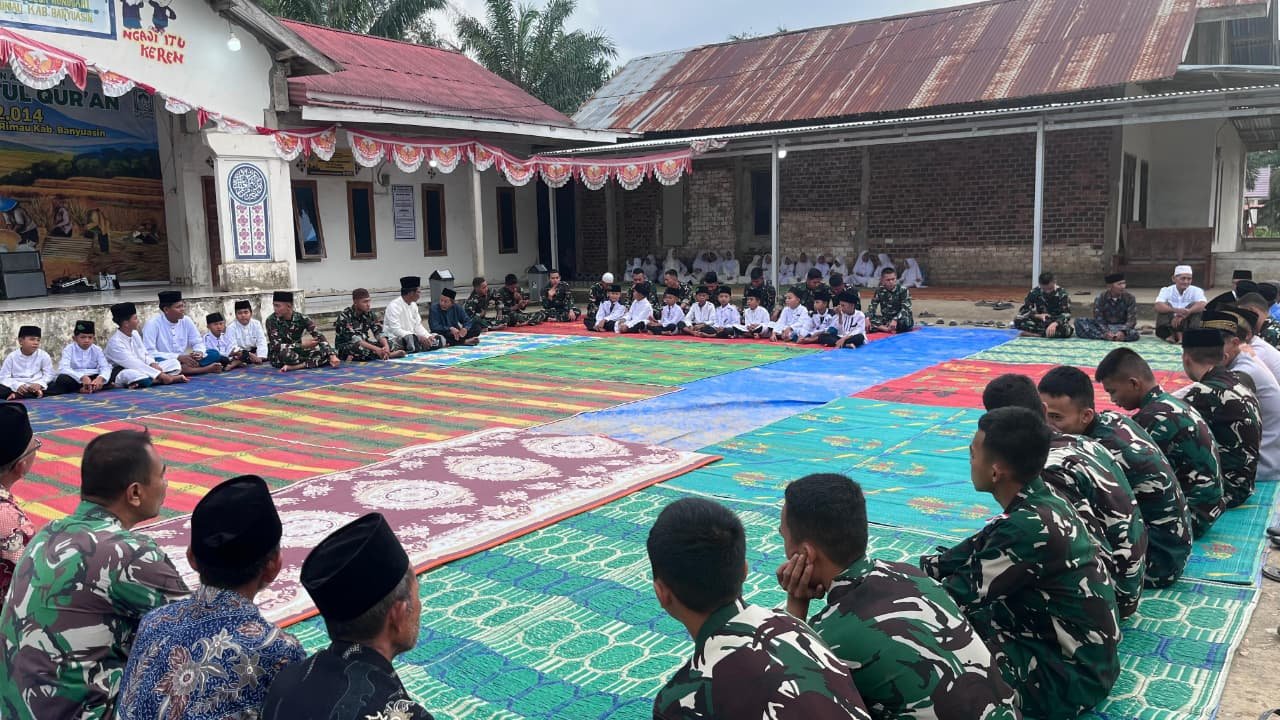 Banyuasin, 6 Maret 2026 – Kedekatan antara anggota Satgas TMMD ke-127 Kodim 0430/Banyuasin dengan masyarakat Desa Wonosari, Kecamatan Pulau Rimau, Kabupaten Banyuasin semakin terasa hangat, terutama di bulan suci Ramadan. Hal ini terlihat saat anggota Satgas TMMD melaksanakan kegiatan buka puasa bersama dengan para siswa dan pengajar TK-TPA Hidayatul Qur’an.