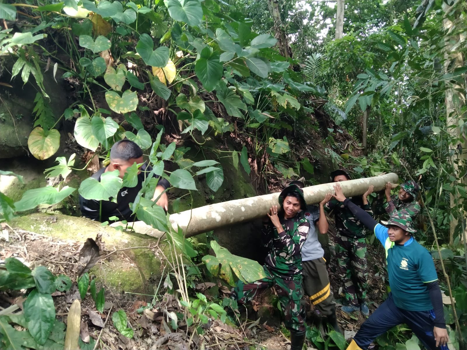 Di tengah medan yang cukup menantang, para prajurit tetap bekerja tanpa mengenal lelah. Mereka menebang, mengangkut, dan menyusun kayu dengan penuh kehati-hatian agar bisa digunakan dalam proses pembangunan jembatan yang menjadi akses vital bagi masyarakat setempat.