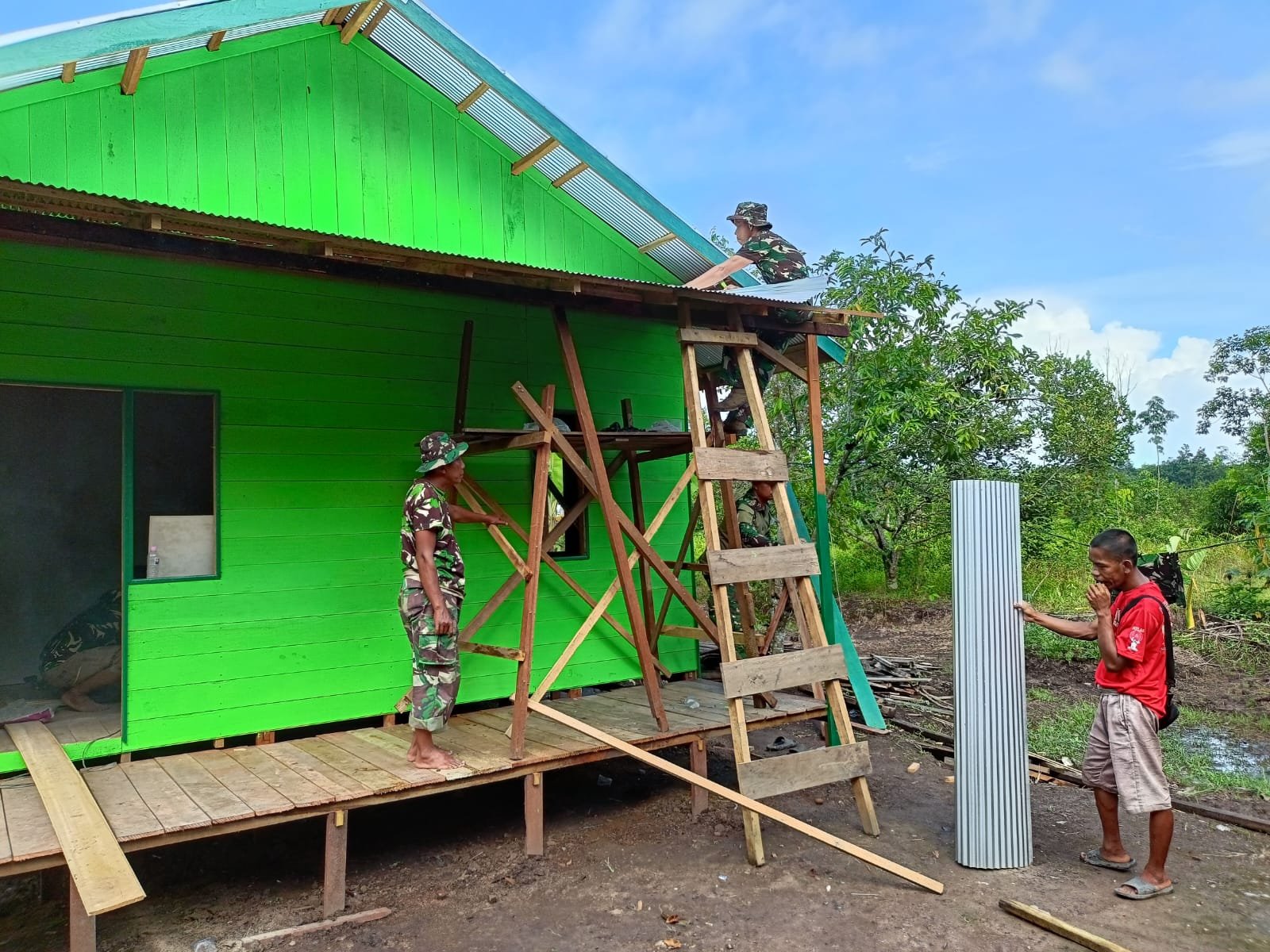 Dengan senyum ramah, Kai Salamun sesekali ikut menyapa para anggota Satgas yang tengah sibuk bekerja. Kamis (23/10), mereka tengah memasang skat kamar menggunakan papan klasiboard, memperbaiki atap teras, serta mulai melakukan pengecatan bagian luar rumah.