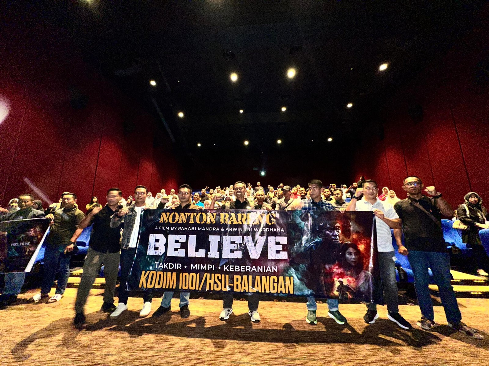 BANJARMASIN – Komandan Kodim 1001/HSU-Balangan Letkol Kav Gunantyo Ady Wiryawan, S. Hub, Int. Didampingi Ketua Persit KCK Cabang XXIV Dim 1001 Ny. Rapih Gunantyo Ady Wiryawan bersama Keluarga Besar Kodim Kodim 1001/HSU-BLG, baru-baru ini menggelar kegiatan nonton bareng film Believe yang bertajuk “Takdir-Mimpi-Keberanian” di Duta Mall Banjarmasin Bioskop XXI. Kegiatan ini berlangsung dengan sangat meriah dan antusias. Sabtu (12/07/2025).