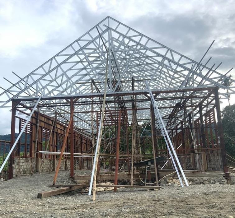 Dalam pembangunan Gereja Talitakum sebagai salah satu sasaran fisik TMMD ke-125 di Kampung Manunggal Jaya SP4, Satgas TMMD Kodim 1705/Nabire memilih menggunakan baja ringan sebagai bahan utama untuk kerangka atap. Rabu (30/07/2025), material tersebut mulai dipasang seiring dengan progres pekerjaan yang telah mencapai 33%.