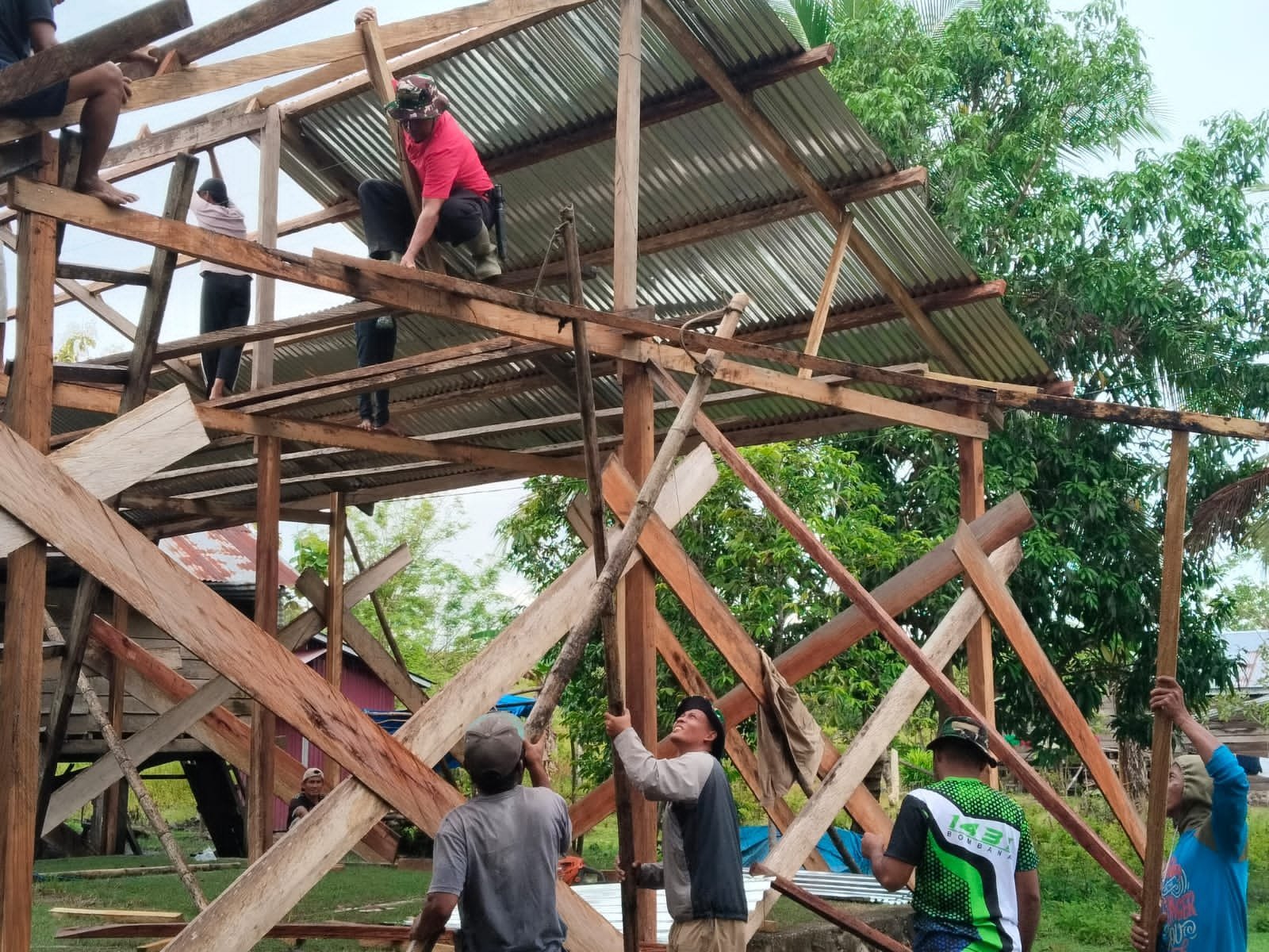 Kepala Desa Totole, Rauke, menyambut baik keterlibatan aktif Satgas dan warga dalam proses pembangunan rumah warganya.