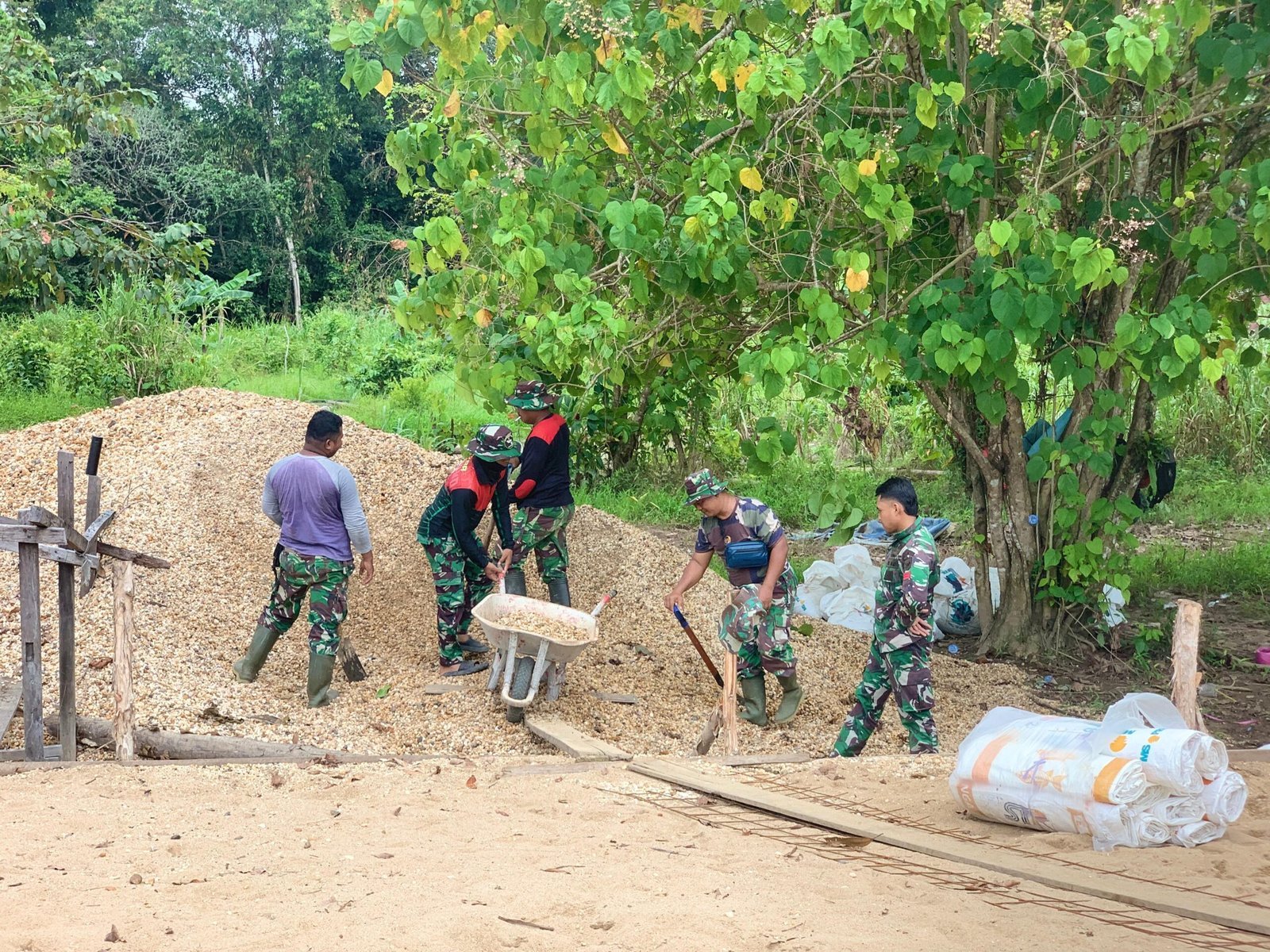 Keuletan dan inovasi Satgas TMMD Kodim 1012/Buntok dengan dukungan alat sederhana ini menjadi kunci keberhasilan pembangunan di Desa Talio, memastikan semua pekerjaan berjalan lancar meskipun menghadapi tantangan medan yang berat.