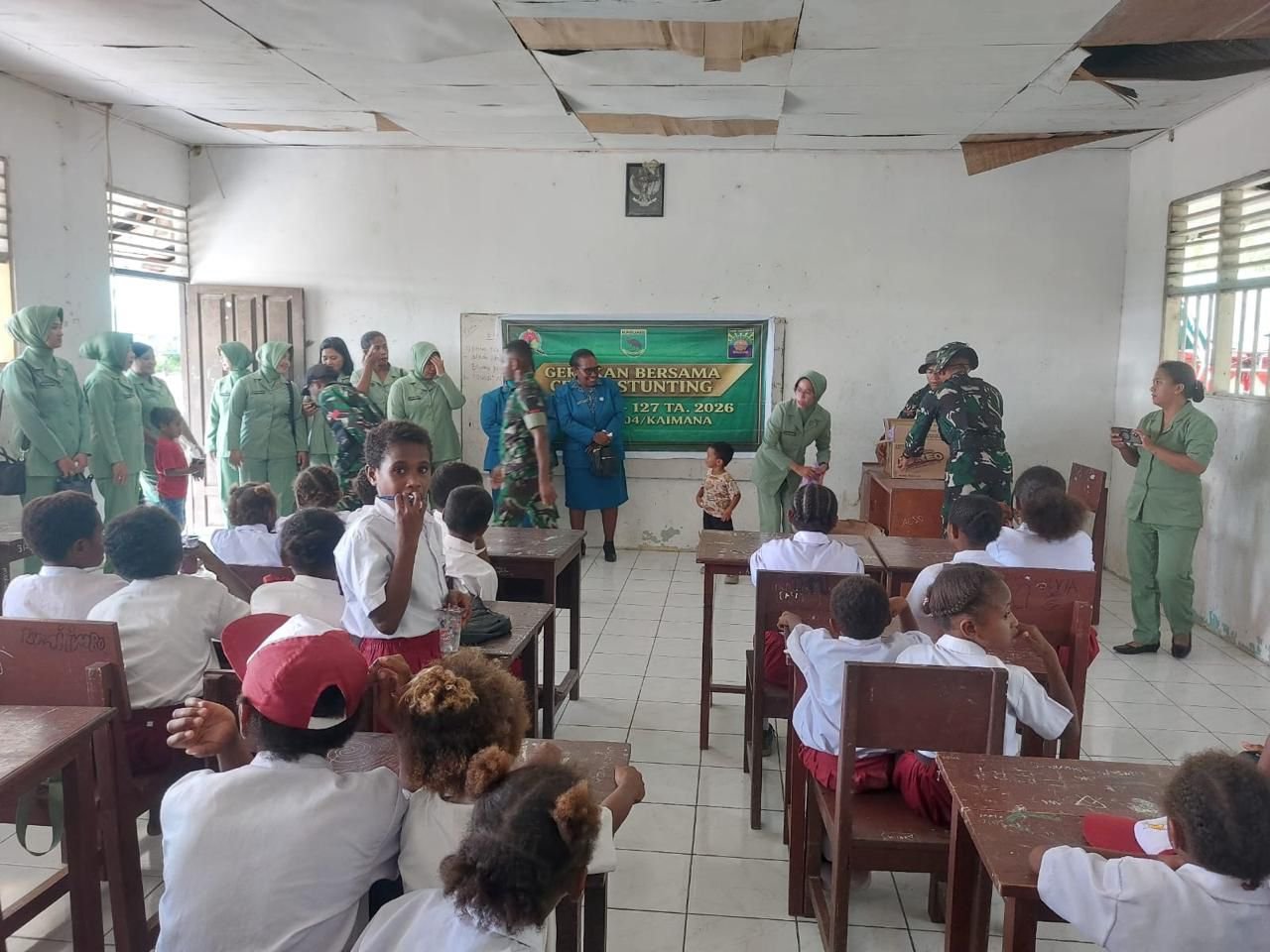Kaimana – Dalam rangka mendukung kegiatan nonfisik program TMMD ke-127, Ketua Persit Kartika Chandra Kirana (KCK) Cabang XL Kodim Kaimana bersama pengurus Persit melaksanakan kegiatan Gerakan Bersama Mencegah Stunting yang digelar di Kampung Marsi, Distrik Kaimana, Kabupaten Kaimana.