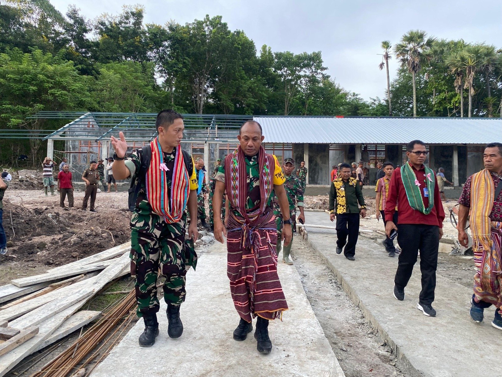 TTU – Setelah beristirahat sejenak, Ketua Tim Pengawas dan Evaluasi (Wasev) Mabes TNI, Asops Panglima TNI Mayjen TNI Gabriel Lema, S.Sos., bersama rombongan melanjutkan agenda kunjungan dengan meninjau langsung progres pembangunan gedung sekolah baru SDN Lanaus dalam rangka program TNI Manunggal Membangun Desa (TMMD) ke-123, Rabu (6/3/2025).