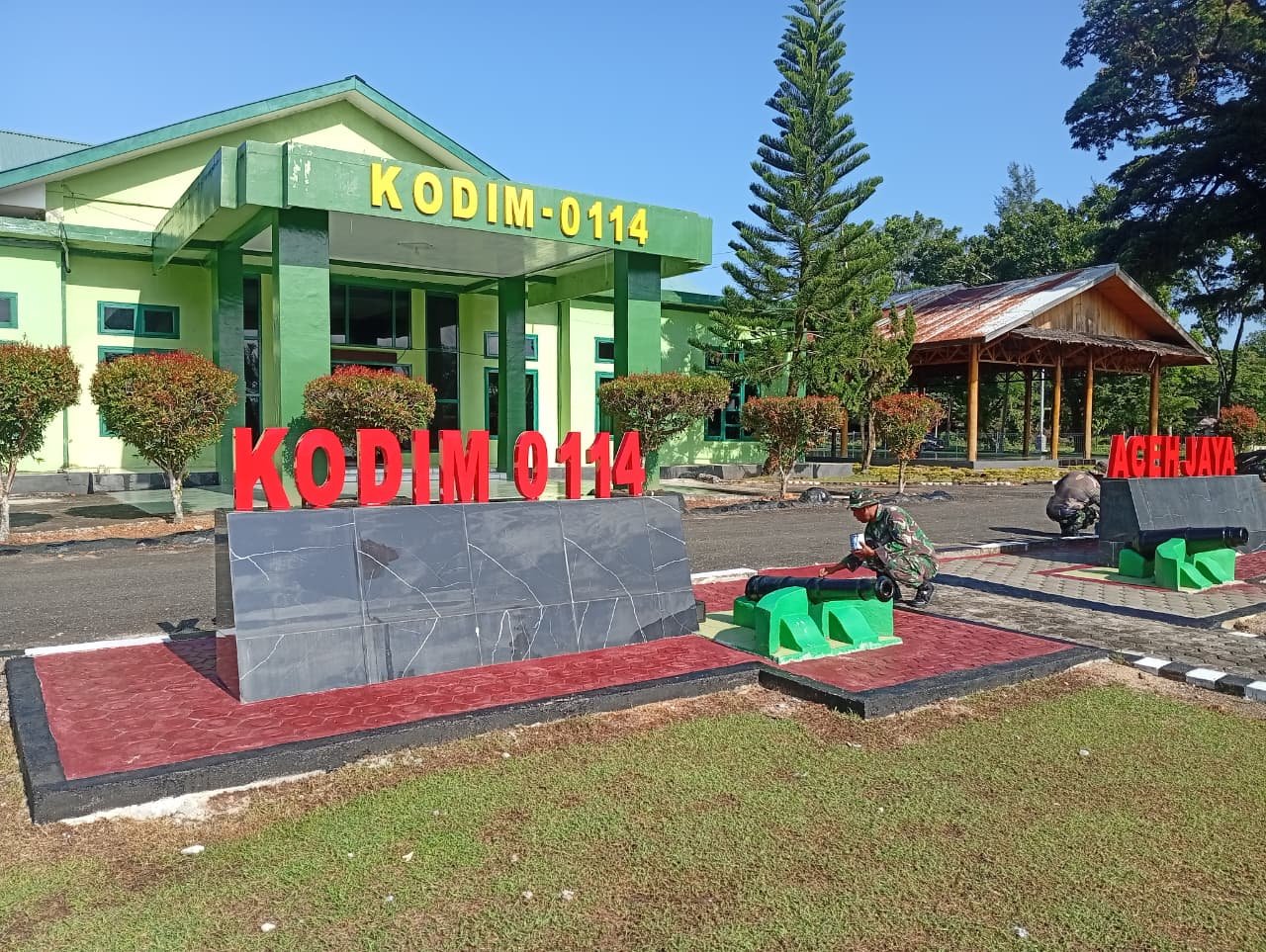 ACEH JAYA – Personel Kodim 0114/Aceh Jaya melaksanakan kegiatan pemeliharaan pangkalan dengan menata dan membersihkan lingkungan satuan agar tetap terlihat rapi dan asri, Rabu (11/03/2026).