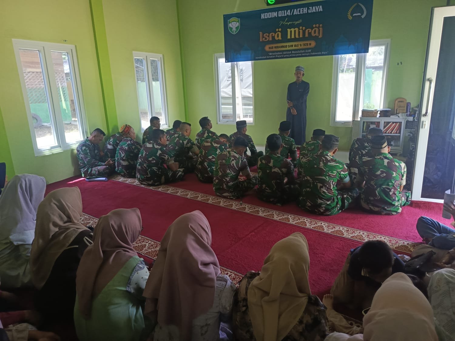 ACEH JAYA — Anggota Kodim 0114/Aceh Jaya memperingati Isra’ Mi’raj Nabi Muhammad SAW Tahun 1447 Hijriah/2026 Masehi yang dilaksanakan di Musholla Al-Jannah Makodim 0114/Aceh Jaya, Senin (19/01/2026).