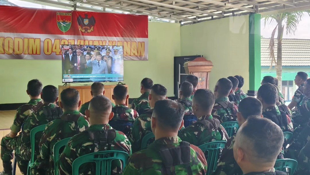 Suasana nobar dan penyimakan pidato berlangsung tenang dan penuh rasa hormat. Para prajurit tampak serius menyimak pesan-pesan yang disampaikan Menteri Kebudayaan terkait pentingnya menjaga ideologi Pancasila sebagai pemersatu bangsa di tengah tantangan global saat ini.