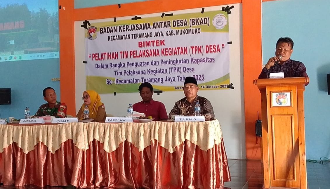 Mukomuko – menghadiri kegiatan Pelatihan kegiatan desa se-kecamatan Teramang Jaya, bagi tim pelaksana kegiatan (TPK) tahun anggaran 2025. Selasa (14/10/2025)