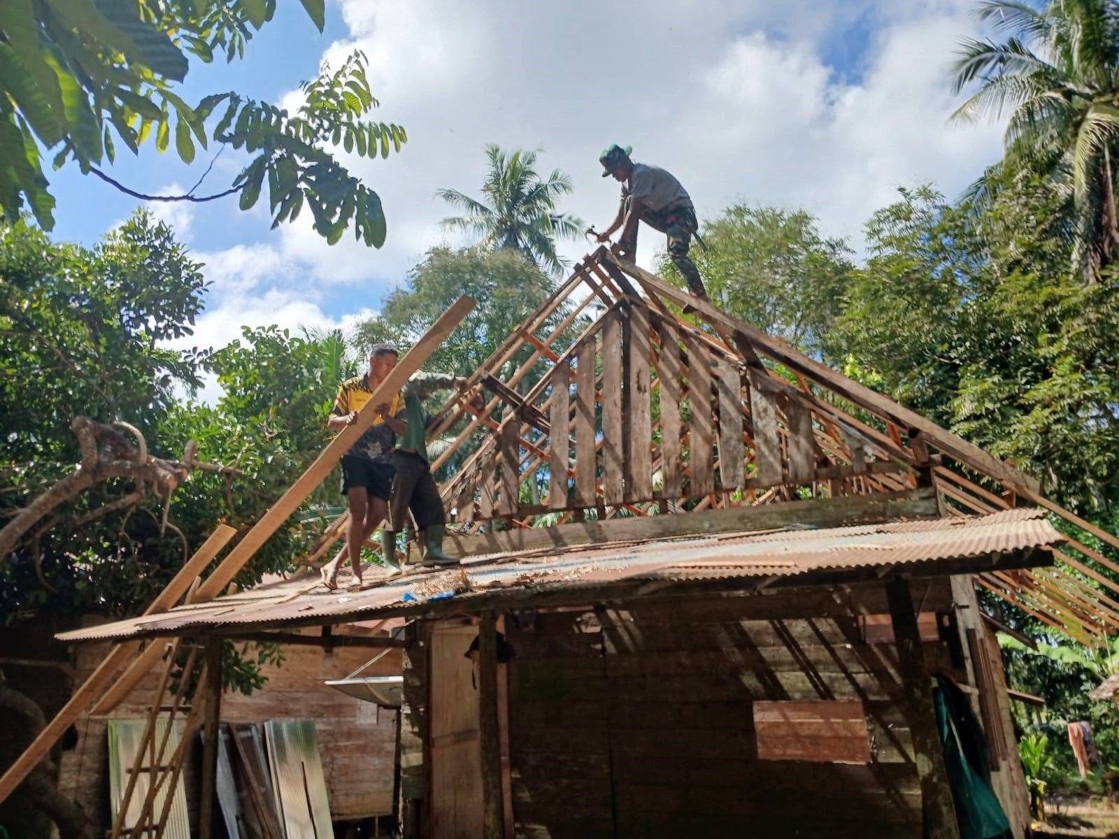 Antusiasme warga terlihat dalam proses pembongkaran dan pembangunan kembali rumah tersebut. Salah satu warga, Amrullah, mengaku senang dengan kehadiran TNI di desanya.