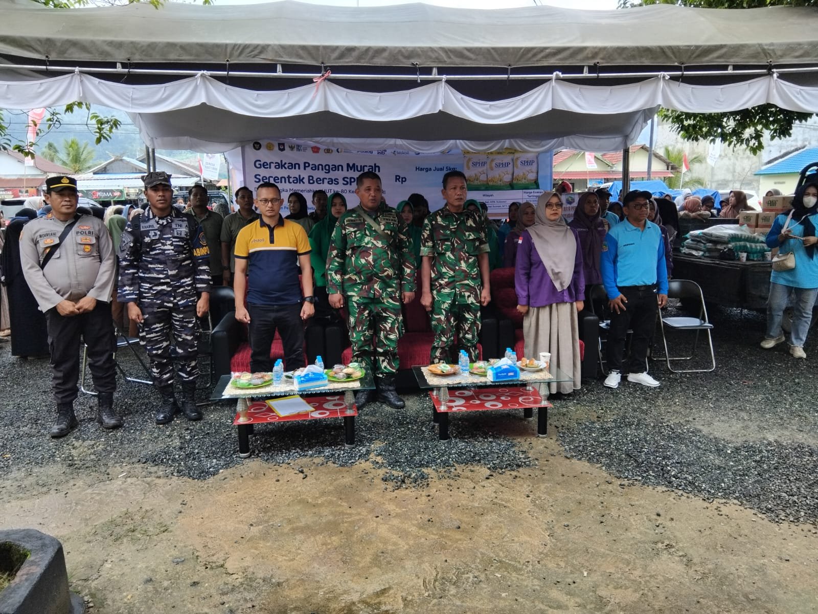 Kegiatan ini digelar atas kerja sama pemerintah Daerah, Bulog bersama TNI-Polri dengan tujuan membantu masyarakat mendapatkan kebutuhan pokok dengan harga lebih terjangkau. Hadir dalam kegiatan tersebut Pasi Ter Kodim 1004/Kotabaru Kapten CKE Supriyanto bersama perwakilan dari Bulog serta perwakilan dari TNI-Polri bersama masyarakat setempat.