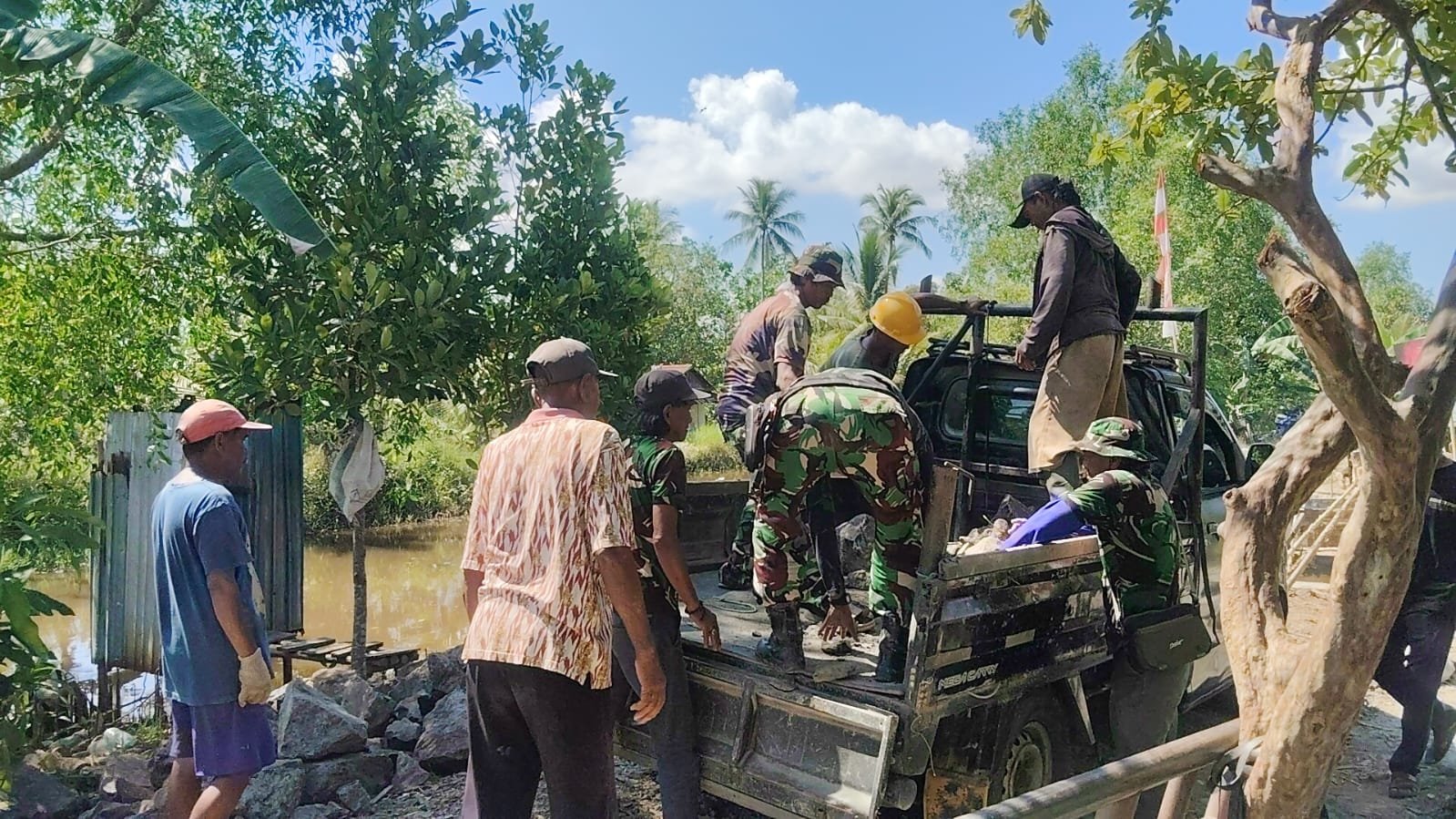 Kodim 1005/Barito Kuala Lanjutkan Pembangunan Jembatan Garuda, Babinsa dan Warga Kerja Sama Buat Bekesting Pondasi