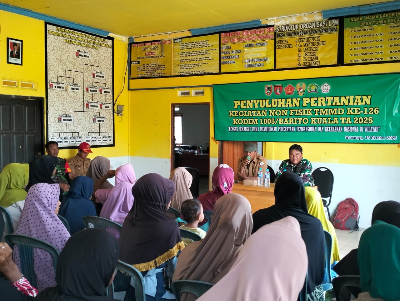 Kegiatan ini merupakan implementasi nyata dari fungsi TNI yang tidak hanya berfokus pada aspek keamanan dan pertahanan, tetapi juga pada penguatan ekonomi dan kesejahteraan masyarakat, khususnya di wilayah pedesaan. Dengan menghadirkan sekitar 50 warga desa, penyuluhan ini bertujuan mendorong swasembada pangan melalui optimalisasi potensi lahan pertanian yang ada.