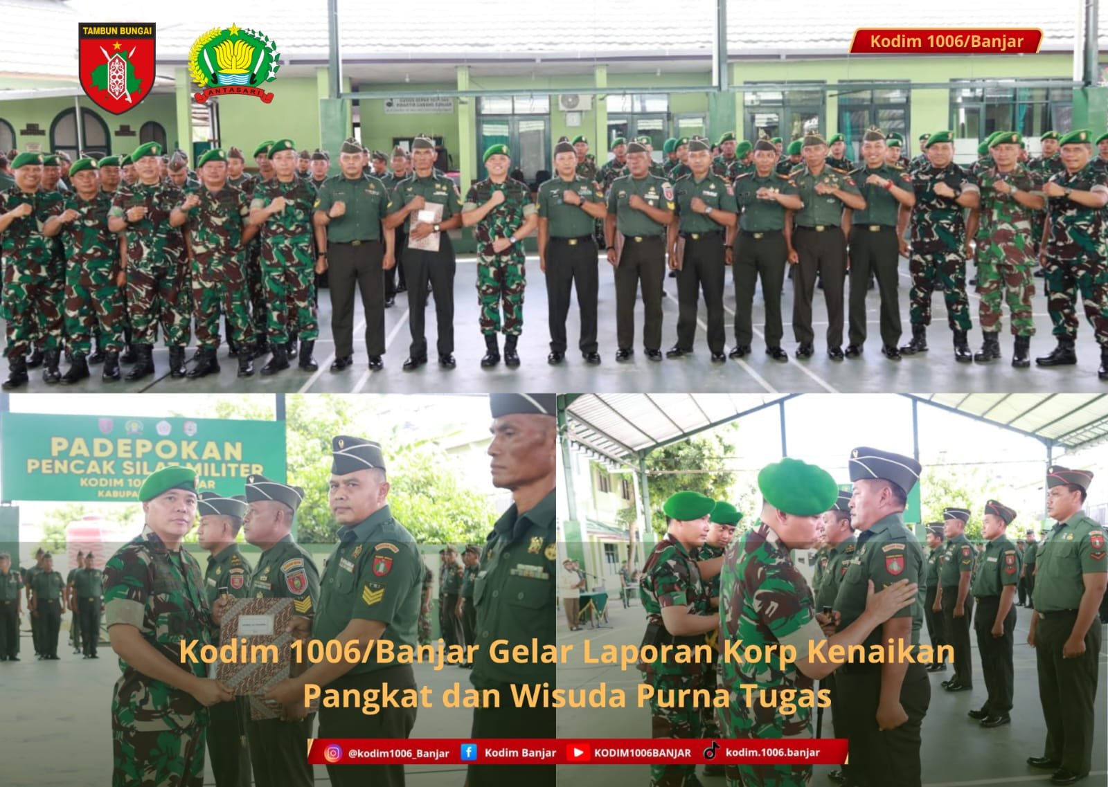Kodim 1006/Banjar Gelar Laporan Korps Kenaikan Pangkat dan Wisuda Purnatugas