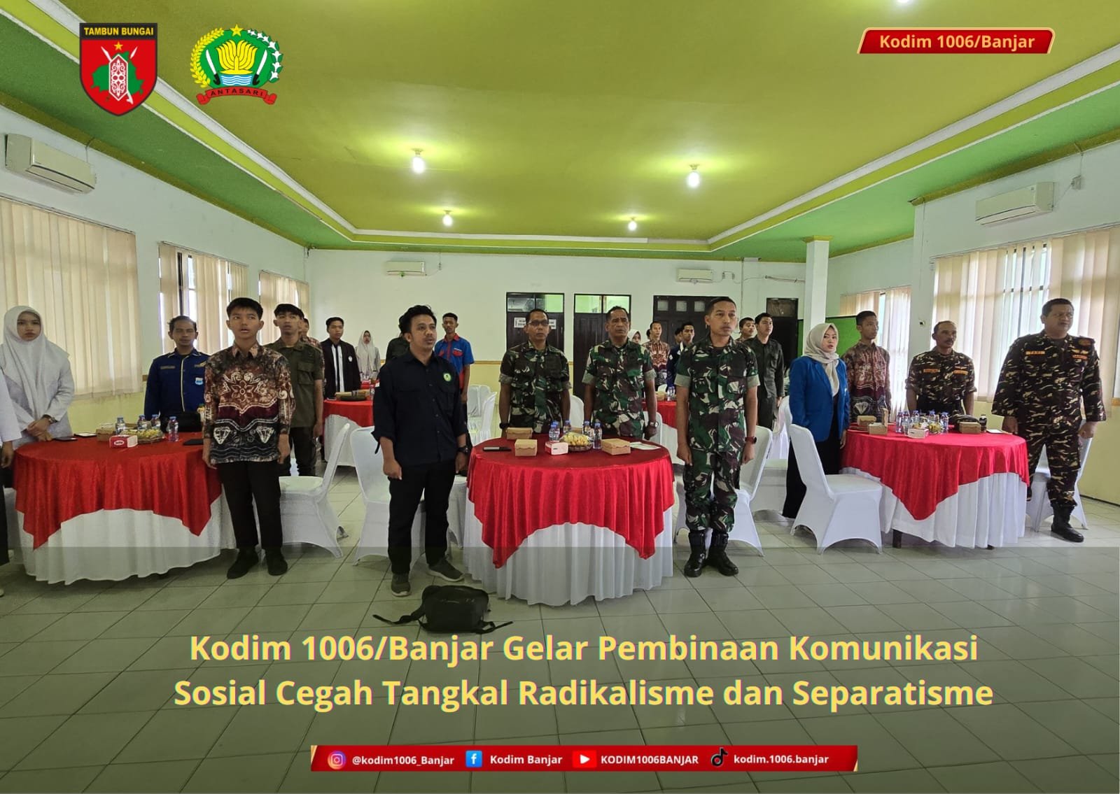 BANJAR – Kodim 1006/Banjar melaksanakan kegiatan Pembinaan Komunikasi Sosial (Binkomsos) dengan tema Cegah Tangkal Radikalisme dan Separatisme Guna Memperkokoh Persatuan dan Kesatuan Bangsa, bertempat di Aula Kodim 1006/Banjar, Rabu 22 Oktober 2025.