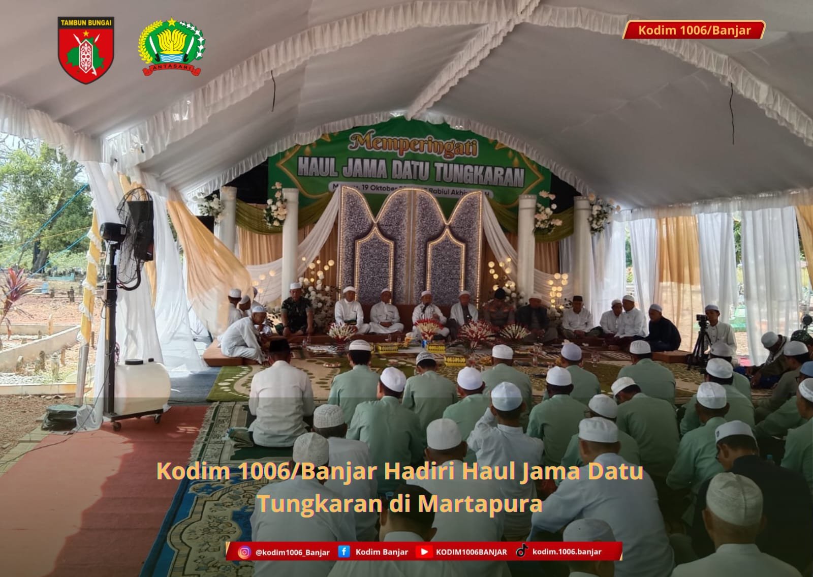 Banjar – Kodim 1006/Banjar diwakili Kapten Inf Mustadir, menghadiri Haul Jama Datu Tungkaran yang digelar di Langgar Datu Bajut, Jalan Kramat RT 09 Desa Tungkaran, Kecamatan Martapura Kota, Kabupaten Banjar, pada Minggu (19/10/2025).