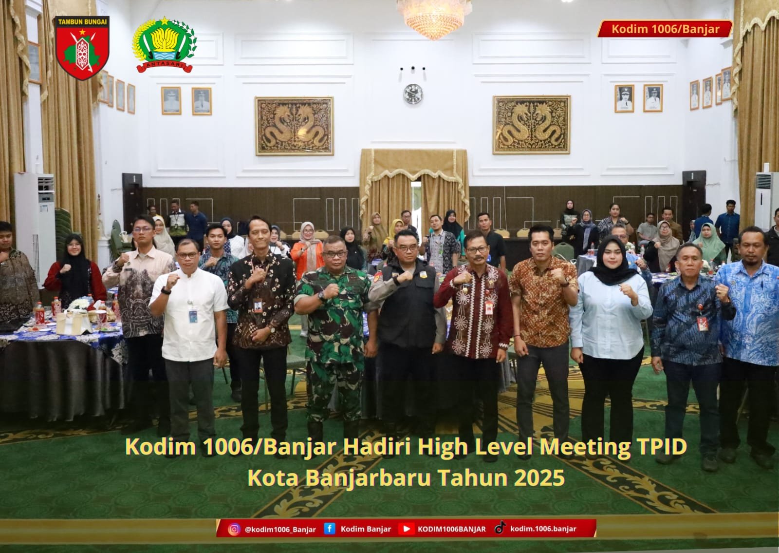 Banjarbaru – Kodim 1006/Banjar diwakilli Pabung Mayor Cpl Bagus Rijayatmo menghadiri kegiatan High Level Meeting (HLM) Tim Pengendalian Inflasi Daerah (TPID) Kota Banjarbaru Tahun 2025, bertempat di Aula Gawi Sabarataan, Jl. Panglima Batur No.1, Kelurahan Komet, Kecamatan Banjarbaru Utara, Jumat (24/10/2025).