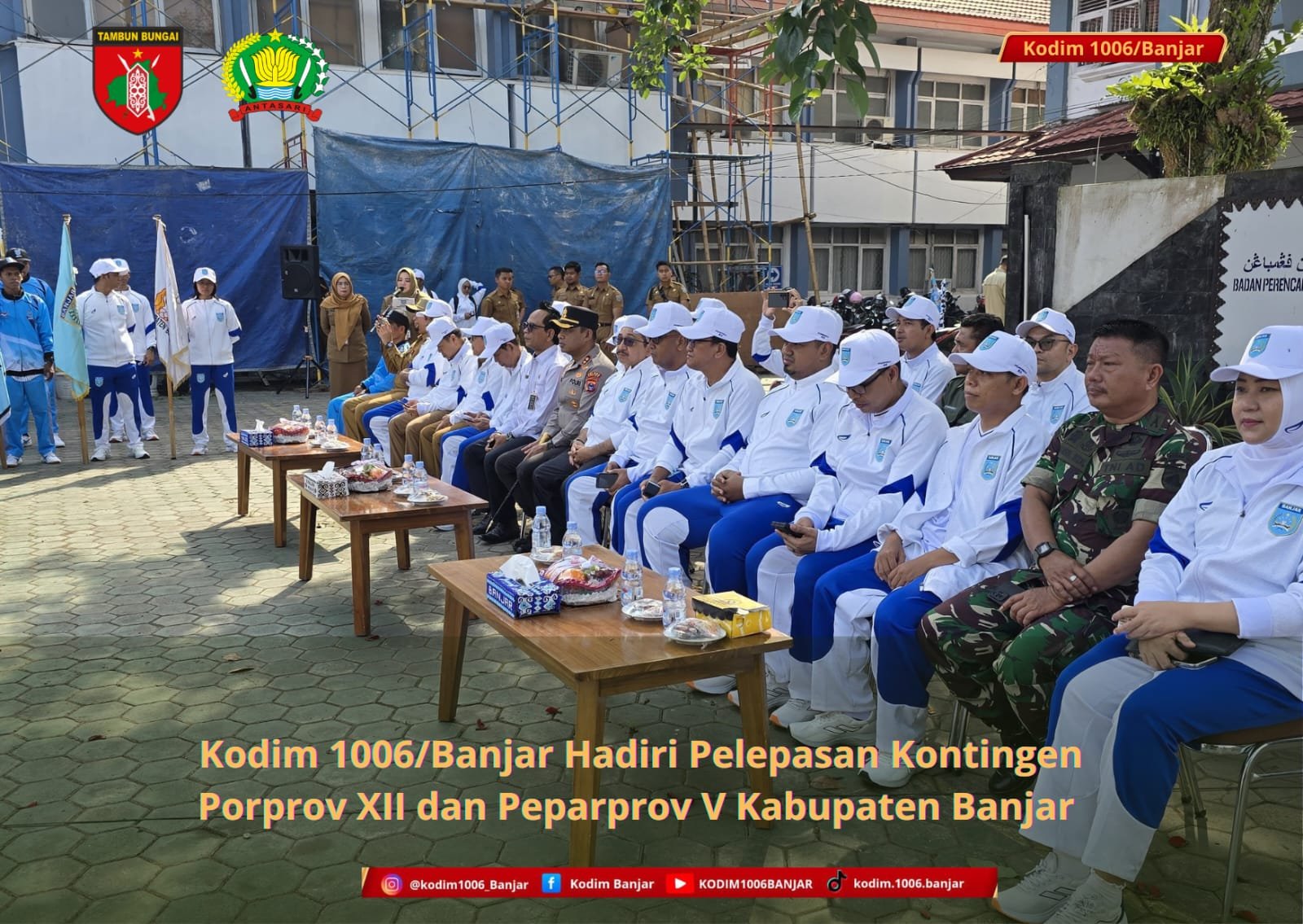 Banjar – Kodim 1006/Banjar diwakili Kapten Inf Samsul Rizal, S.Sos menghadiri kegiatan Pelepasan Kontingen Pekan Olahraga Provinsi (Porprov) XII dan Pekan Paralimpiade Provinsi (Peparprov) V Kabupaten Banjar Tahun 2025, yang dilaksanakan di halaman Kantor Bappedalitbang Kabupaten Banjar, Senin (20/10/2025) pagi.