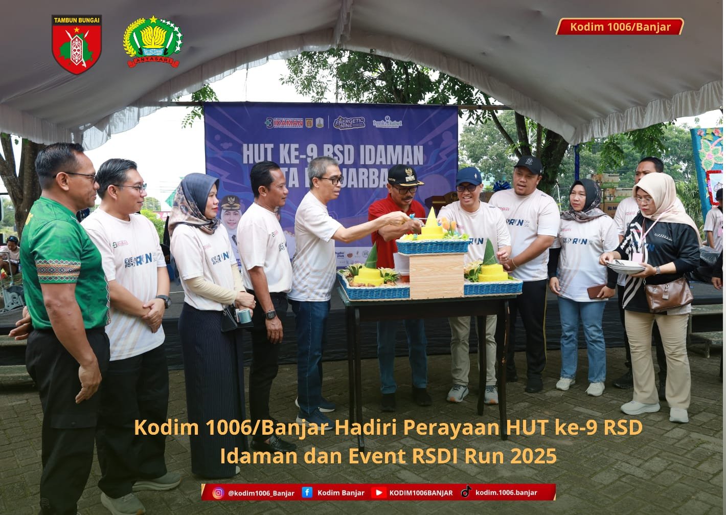 Banjarbaru – Kodim 1006/Banjar diwakili oleh Kapten Cku Agus Priyanto menghadiri Perayaan Hari Ulang Tahun ke-9 RSD Idaman Banjarbaru yang dirangkai dengan Event RSDI Run 2025 serta Peresmian Gedung Unit Pengelola Darah (UPD) dan Ruang Kelas Rawat Inap Standar (KRIS), Minggu (2/11) di halaman RSD Idaman, Jl. Trikora No.115, Kelurahan Guntung Manggis, Kecamatan Landasan Ulin, Kota Banjarbaru.