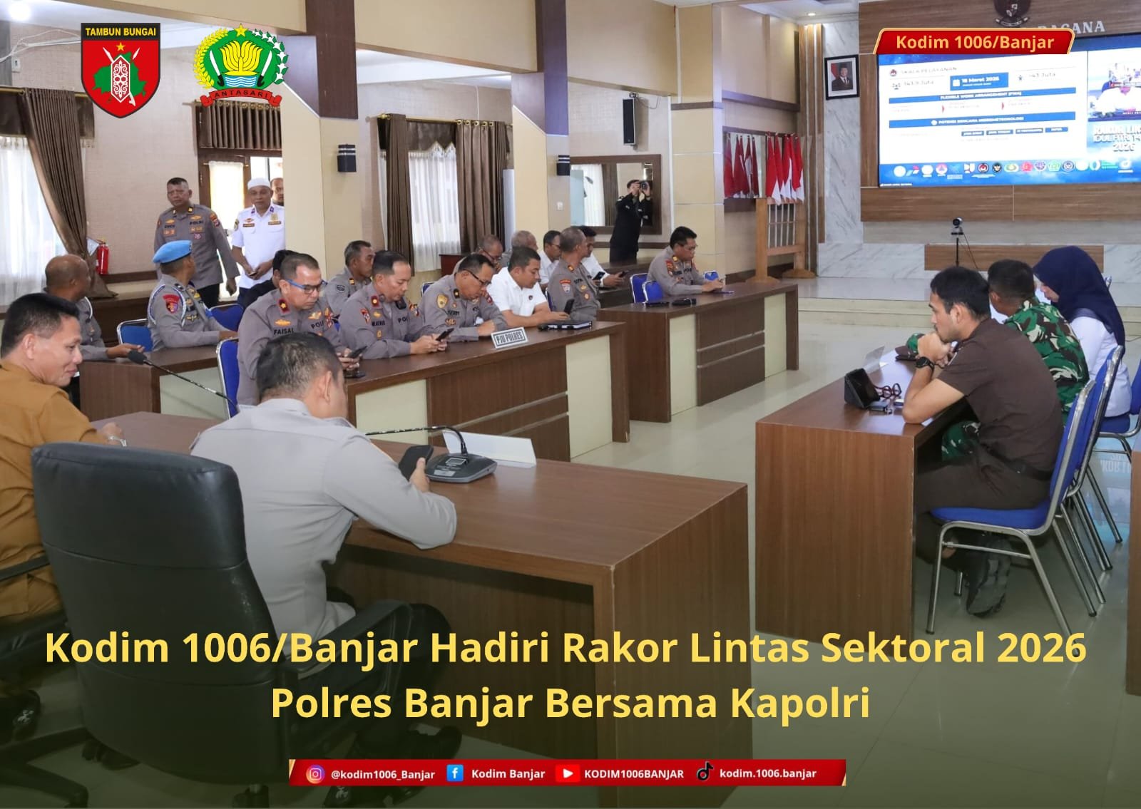 Kegiatan yang berlangsung di Aula Sarja Arya Racana Polres Banjar, Jalan A. Yani Km 39, Desa Sungai Sipai, Kecamatan Martapura, Kodim 1006/Banjar diwakili oleh Pasi Ops Kodim 1006/Banjar Kapten Inf Dorman Simbolon.