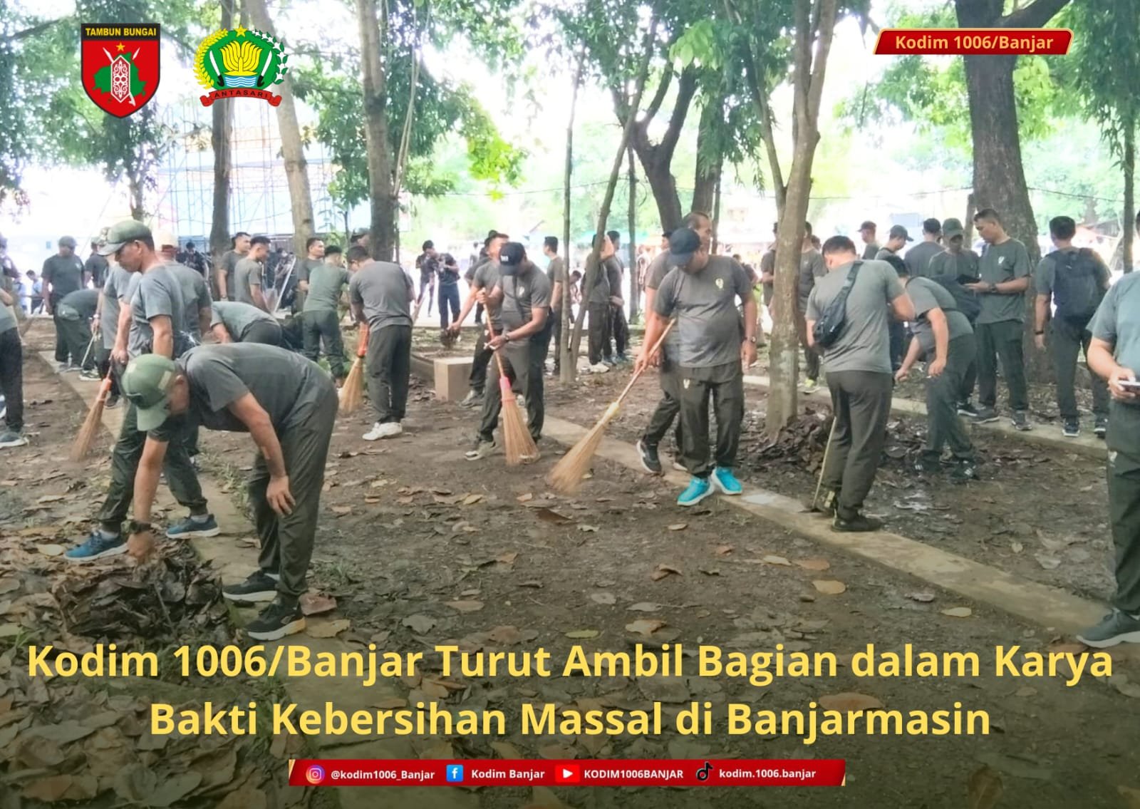 Kegiatan karya bakti tersebut melibatkan sekitar 1.000 personel gabungan dari unsur TNI, Polri, pemerintah daerah, mahasiswa, pelajar, serta berbagai elemen masyarakat. Aksi massal ini dilaksanakan sebagai wujud kepedulian bersama dalam menciptakan lingkungan yang bersih, sehat, dan asri di wilayah Provinsi Kalimantan Selatan.