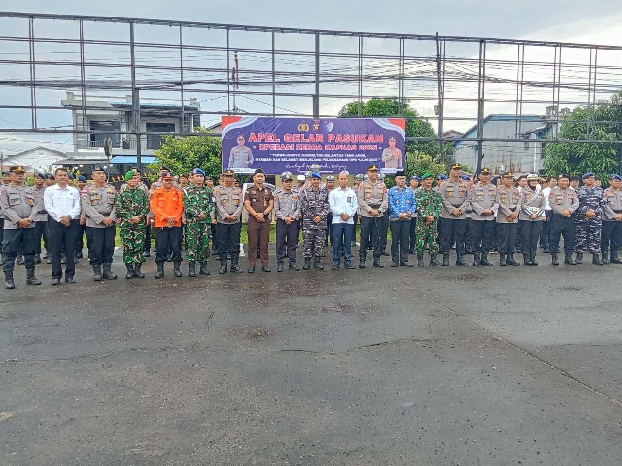 KETAPANG – Anggota Kodim 1203/Ketapang yang dipimpin oleh Danramil 1203-12/Delta Pawan Kapten Inf Budi Santoso menghadiri apel gelar pasukan Operasi Kepolisian Kewilayahan “Zebra Kapuas 2025” yang dilaksanakan di halaman Mapolres Ketapang, Senin (17/11/2025).