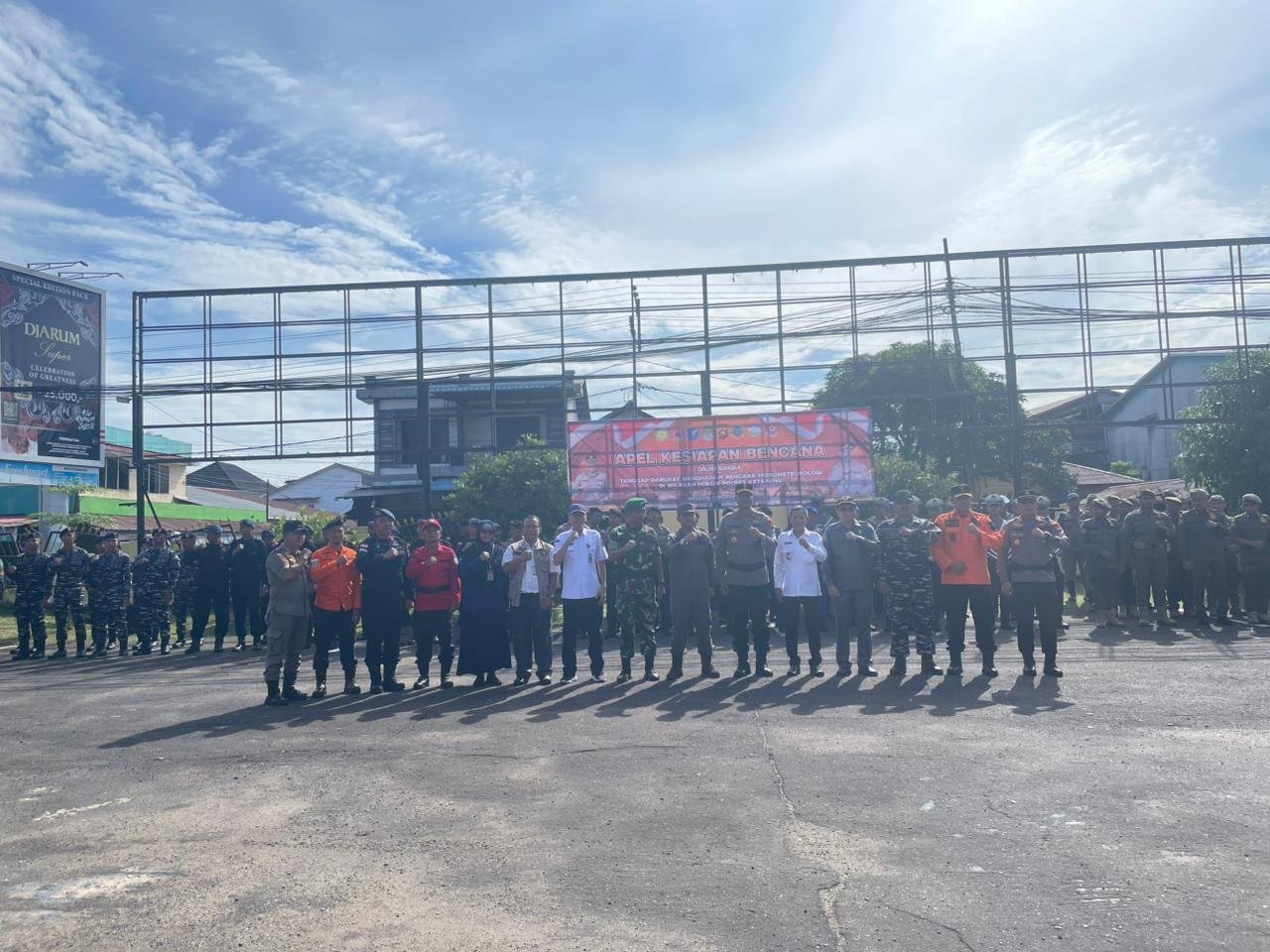 Apel kesiapan berlangsung lancar dan diakhiri dengan pengecekan perlengkapan serta kesiapan personel dan peralatan penanggulangan bencana.(1203).