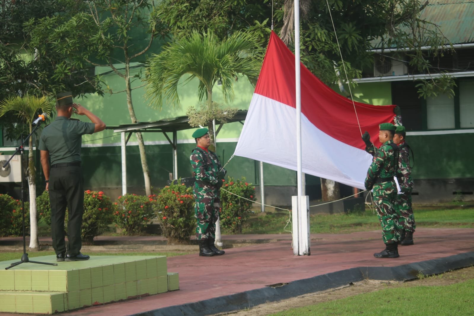Upacara bendera tersebut dipimpin oleh Kapten Inf Budi Santoso selaku Inspektur Upacara (Irup), dengan Pelda Heri P sebagai Komandan Upacara (Danup). Kegiatan ini diikuti oleh seluruh prajurit dan PNS Kodim 1203/Ketapang.