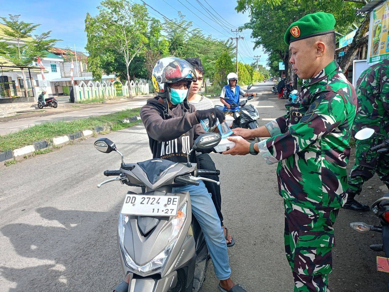 Kodim 1424/Sinjai Gelar Jumat Berkah Berupa Pembagian Nasi Dos Kepada Masyarakat Sinjai Utara