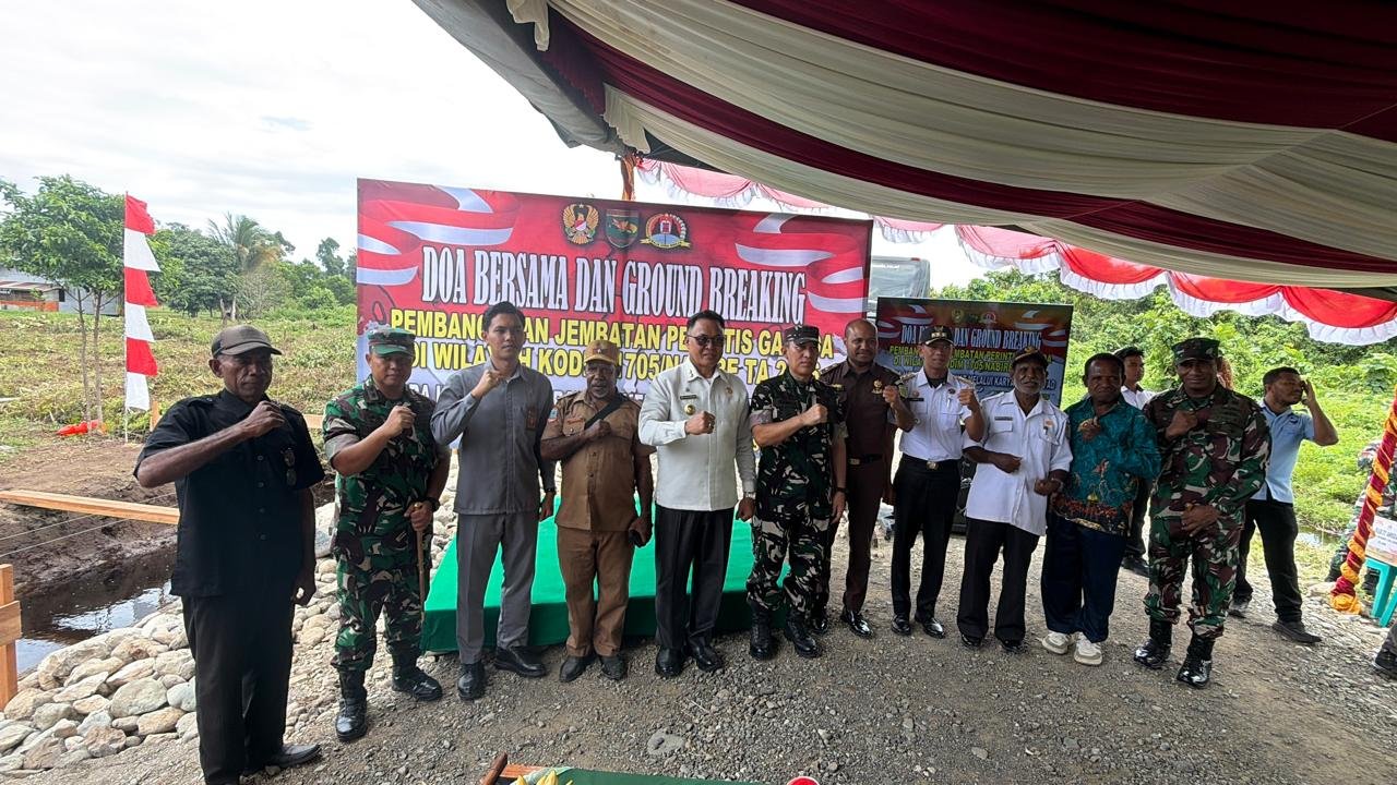 Nabire, Papua Tengah – Kodim 1705/Nabire melaksanakan kegiatan ground breaking (peletakan batu pertama) pembangunan Jembatan Perintis Garuda Tahun Anggaran 2026, bertempat di Kampung Beringin Waroki, Distrik Nabire Barat, Kabupaten Nabire, Rabu (08/04/2026).