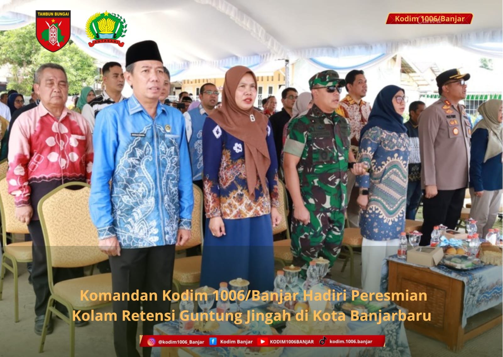 Banjarbaru – Komandan Kodim 1006/Banjar Letkol Inf Bambang Prasetyo Prabujaya S.Hub.Int., M.Han. menghadiri kegiatan Peresmian Kolam Retensi Guntung Jingah yang digelar di Jalan Sukarelawan, Kelurahan Guntung Payung, Kecamatan Landasan Ulin, Kota Banjarbaru, pada Sabtu (11/10/2025).